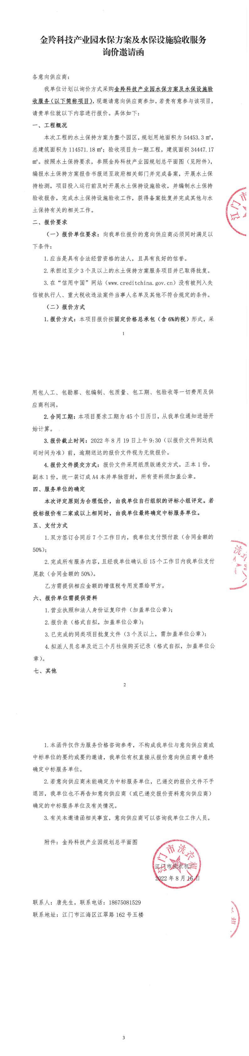 金羚科技产业园水保方案及水保设施验收服务询价邀请函