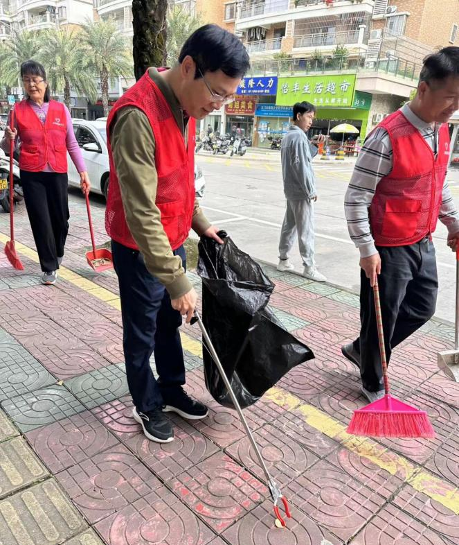 活动中,义工们积极参与、干劲十足,充分发扬不怕苦、不怕脏、不怕累的精神,手持扫把、夹子等工具,穿梭在广场公园各个角落,红马甲们对广场公园地面及周边路面进行“地毯式”的搜索,捡拾地上和绿化带里的烟蒂、纸屑以及果皮等杂物,不放过任何一个卫生死角。