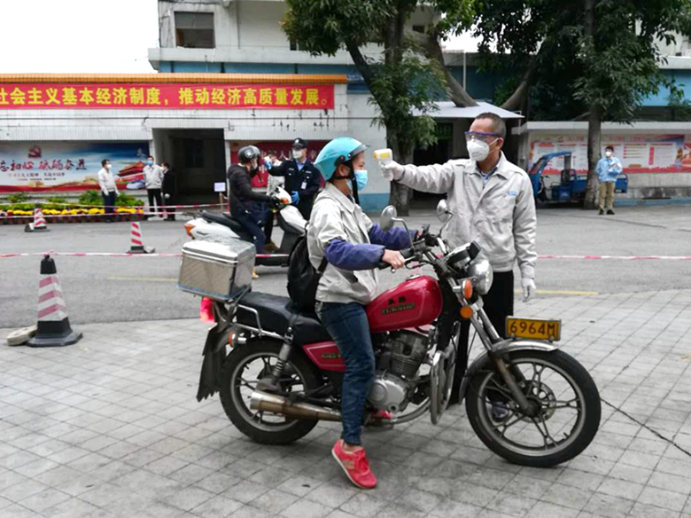 公司复工后,金羚集团新型冠状病毒感染肺炎疫情防控领导小组组织党员在工厂的门口为员工进行100%体温测量,确认体温正常并佩戴口罩才放行进入厂区,向全体员工发出疫情防控宣传单张《致金羚集团职工的一封信》,强化在岗人员防控疫情意识。