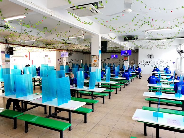 公司食堂是人群聚集场所,也是疫情防控的难点,的安全尤其重要。为防止人群聚集,金羚集团要求食堂改变供餐方式,分别针对餐前、餐中、餐后采取较为全面的安全防范措施。