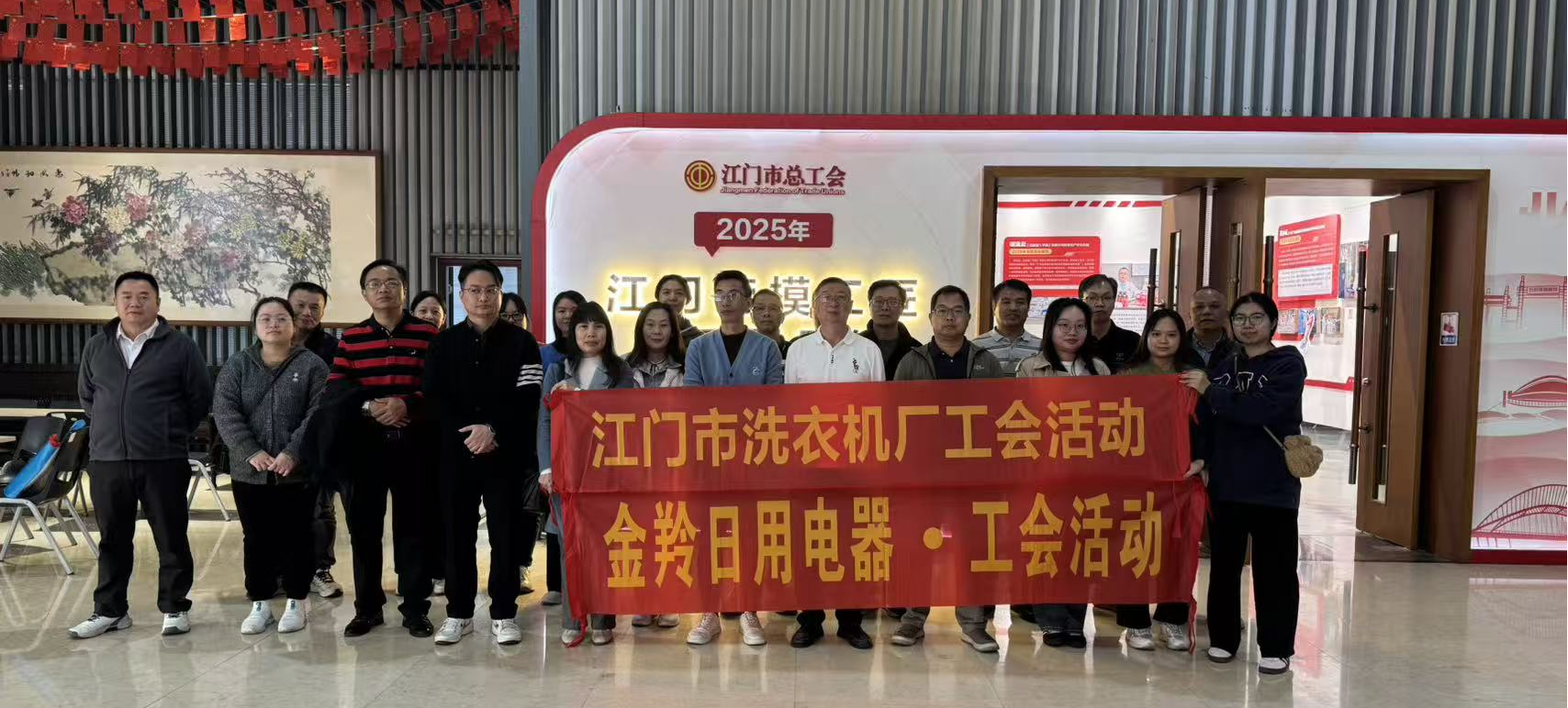 为对标劳模先进,激发奋进力量,引导干部职工以先进典型为镜,在各自岗位践行“工匠精神”和“奉献精神”。江门市洗衣机厂工会与江门金羚日用电器有限公司工会联合举办“弘扬劳模精神,传承工匠力量”工会活动,组织职工参观江门劳模工匠风采展示馆。